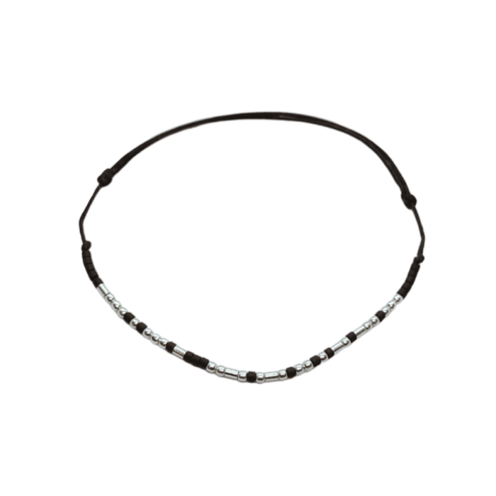 - șnur + mărgele negre din sticlă + argint 925 placat cu platină